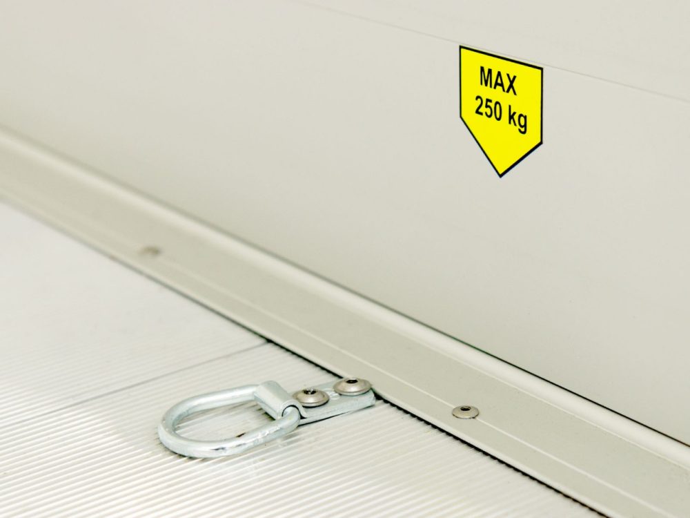 • Der Innenraum verfügt über 6 Verzurrösen die ein perfektes festsetzen der Maschinen/Ladung garantiert