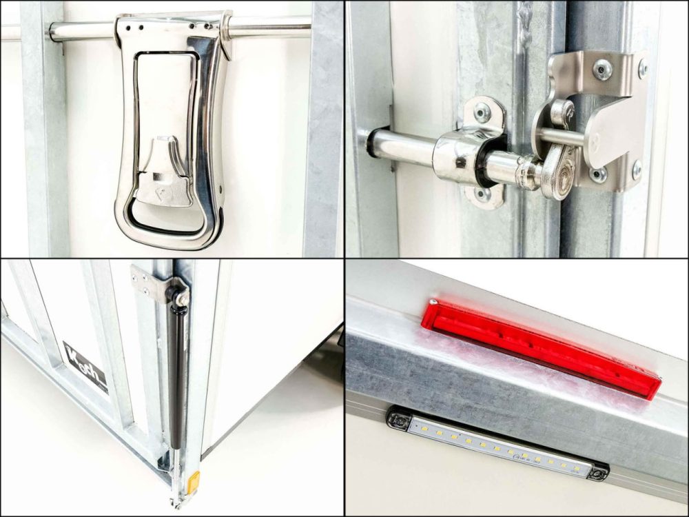 Die Populäre Serie des geschlossenen Kofferanhängers der Firma Koch , ein bisschen breiter und höher in einem tollem und benutzerfreundlichem Design.