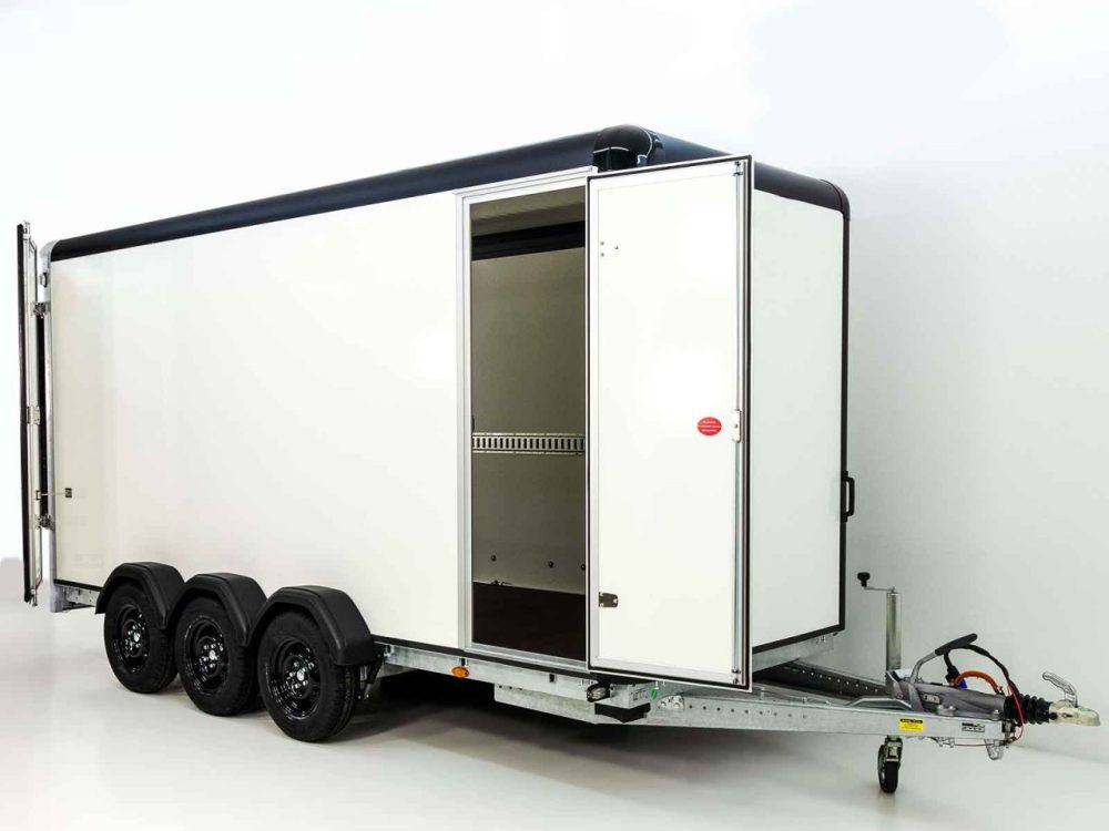 Die Populäre Serie des geschlossenen Kofferanhängers der Firma Koch , ein bisschen breiter und höher in einem tollem und benutzerfreundlichem Design.