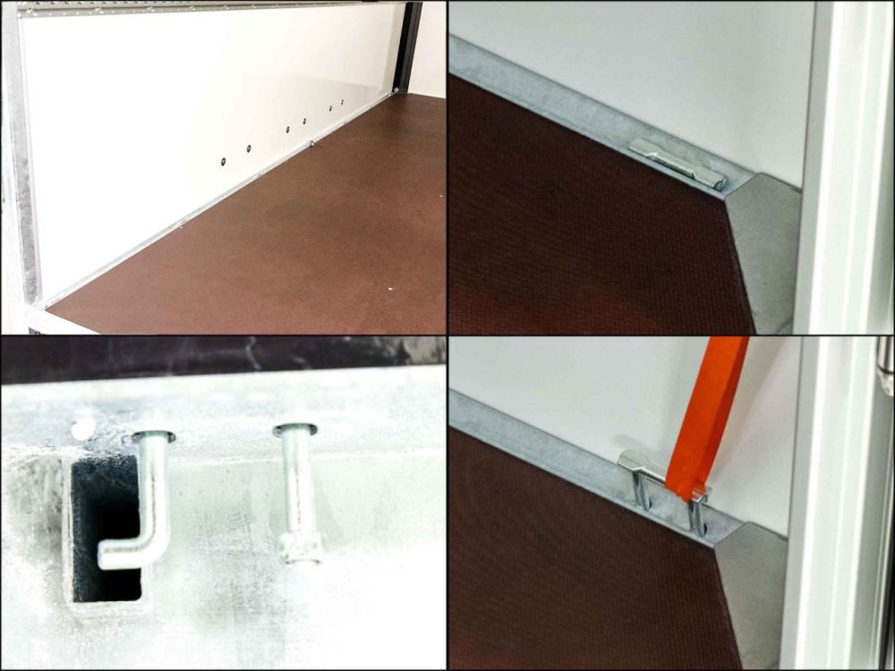 Alle Modelle werden standardmäßig mit Verzurrösen innen und ein Schwerlast Stützrad geliefert.