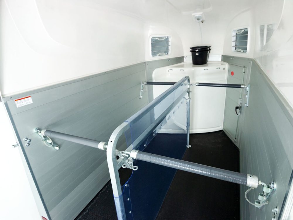 Pferdeanhänger Equitos für 2 Pferde von der Marke Humbaur. Aluminium-Anhänger mit zuläßigem Gesamtgewicht von 2000kg und einer Nutzlast von ca. 1227kg.
