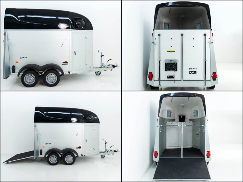 Mit dem Aluminium-Polyester-Pferdeanhänger Equitos Alu bietet Humbaur ein Einsteigermodell für zwei Pferde. Mit ein hervorragendes Fahrverhalten und eine sehr gute Ausstattung mit hoher Bedienungsfreundlichkeit.