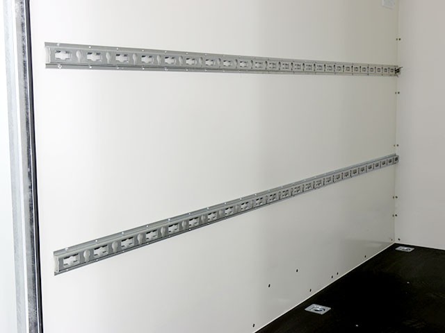 Solider weißer Koffer-Anhänger mit einem Lademaß von 146x304cm Innenhöhe180cm. Dieser Anhänger mit zuläßigem Gesamtgewicht von 1300kg und einer Nutzlast von ca. 686kg ist von der Marke Blyss.