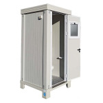 Der Sanitärblock S1 besteht aus einem verzinkten Stahlrahmen, der in der hellgrauen Farbe RAL 9002 lackiert ist.