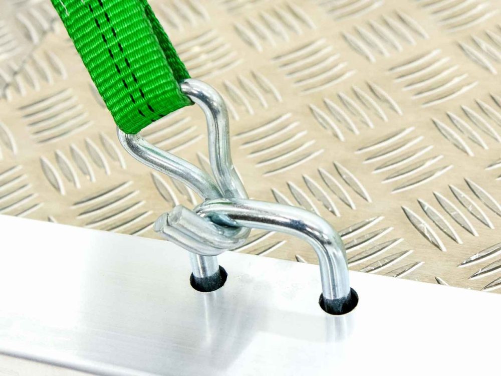 - Vielzahl an Verzurrpunkte Lochprägung neben dem Alu-Boden für die Ladungssicherung.
