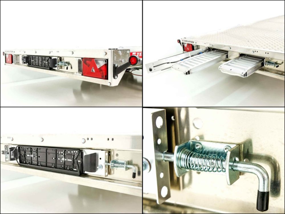 ermöglichen Ihnen einen angenehmen niedrigen Auffahrwinkel. Durch die Vielzahl der Verzurrpunkte die in der Plattform verbaut sind, können Sie sämtliche Fahrzeuge