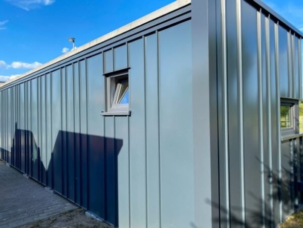Bürocontainer /6×3 Meter mit Fenstern auf der langen rechten Seite