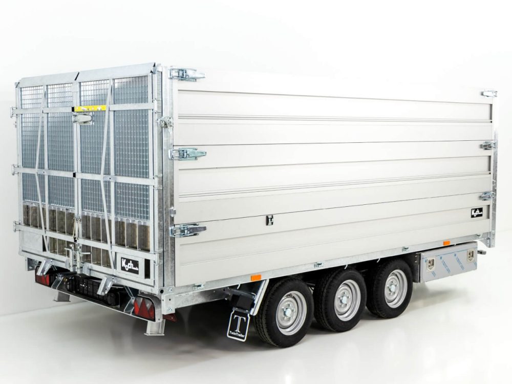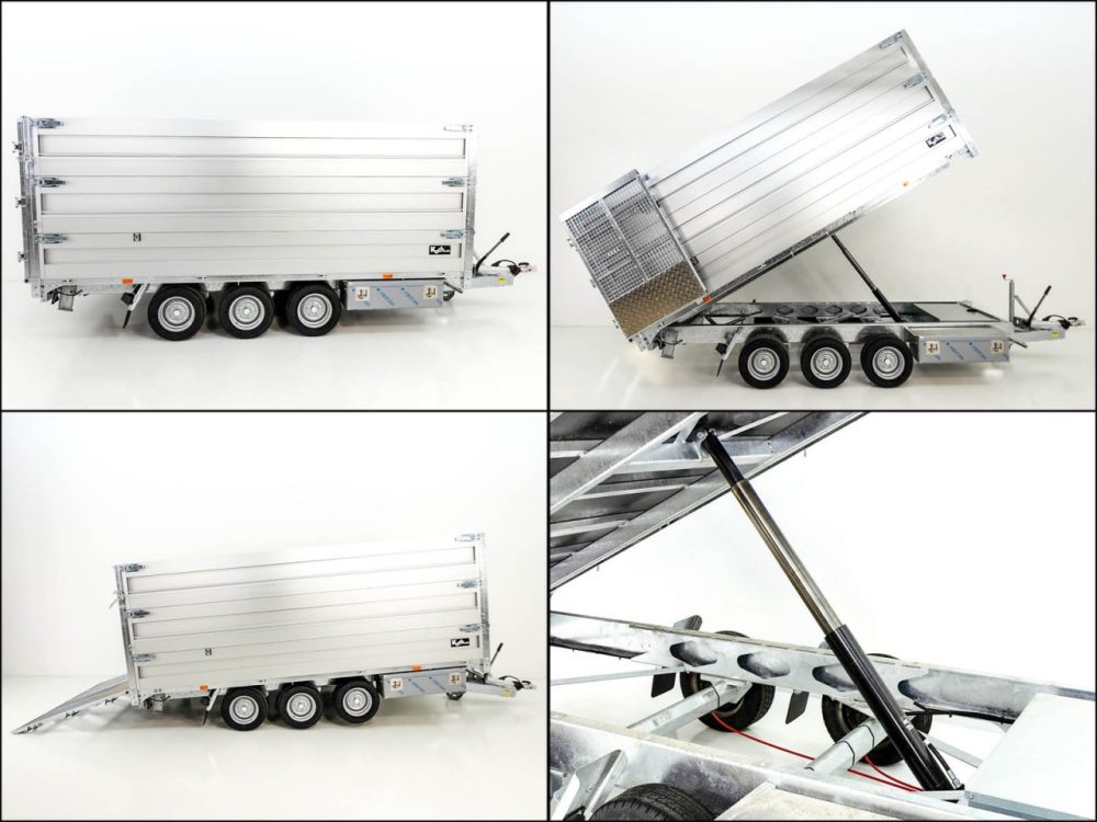 - Maschinen- und Kippanhänger mit ca. 55° Kippwinkel zum abkippen und ca. 16° Auffahrwinkel