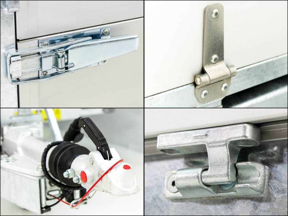 - 8 Zurrösen im Rahmenprofil, 8 Anbindehaken unter dem Fahrgestell