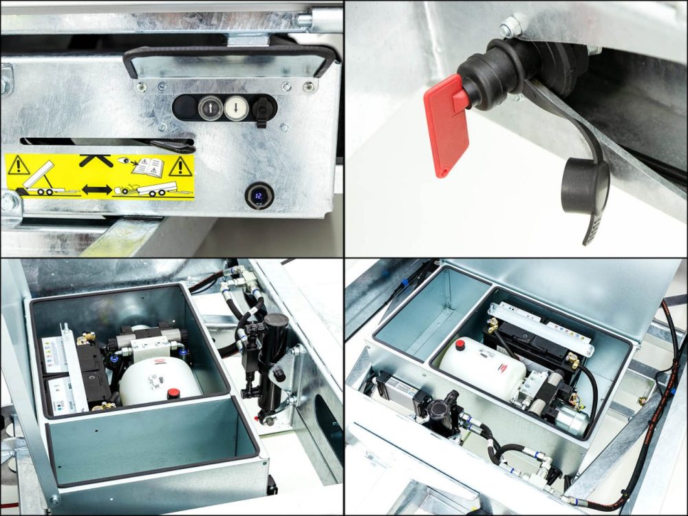 - Maschinen- und Kippanhänger mit ca. 50° Kippwinkel zum abkippen und ca. 16° Auffahrwinkel