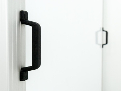• Edelstahl-Drehstangenverschluß an doppelflügeliger Hecktüre
