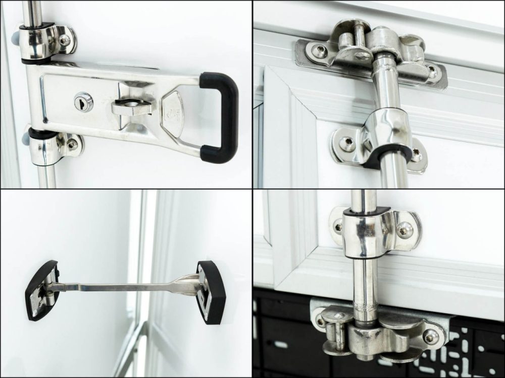 • Edelstahl-Drehstangenverschluß an doppelflügeliger Hecktüre