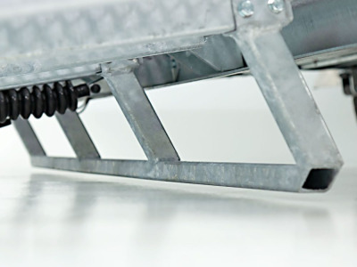 • 130cm hohe Rampe über ganze Breite mit Hebehilfe und Zwangsabstützung